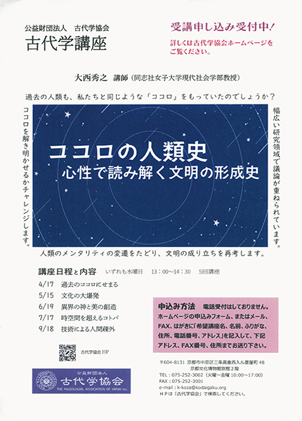 古代学講座 『ココロの人類史―心性で読み解く文明の形成史』開講中です大西秀之教授(B01班/同志社女子大学)が講師を務める古代学